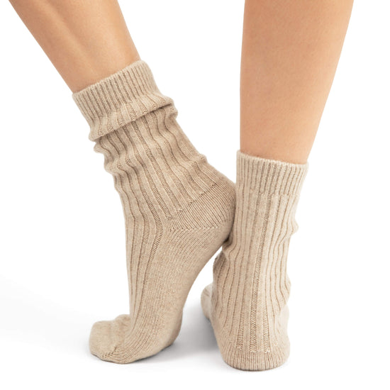 Made with 95% luxurious cashmere for unmatched softness and warmth, these socks include 5% spandex to add gentle stretch, durability, and shape retention. This thoughtful blend ensures a comfortable, stay-put fit that recovers after wear while preserving the sumptuous feel of pure cashmere.