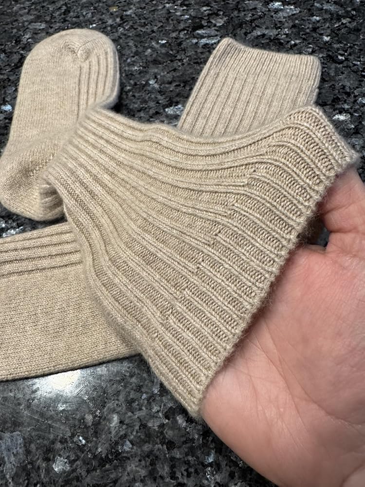 Made with 95% luxurious cashmere for unmatched softness and warmth, these socks include 5% spandex to add gentle stretch, durability, and shape retention. This thoughtful blend ensures a comfortable, stay-put fit that recovers after wear while preserving the sumptuous feel of pure cashmere.